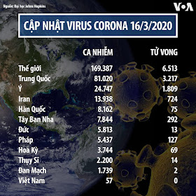 * Sáng nay ngày 17 tháng 3 thì Mỹ đã tăng lên 4 ngàn 600 nguời bị nhiễm, và 85 nguời chết.